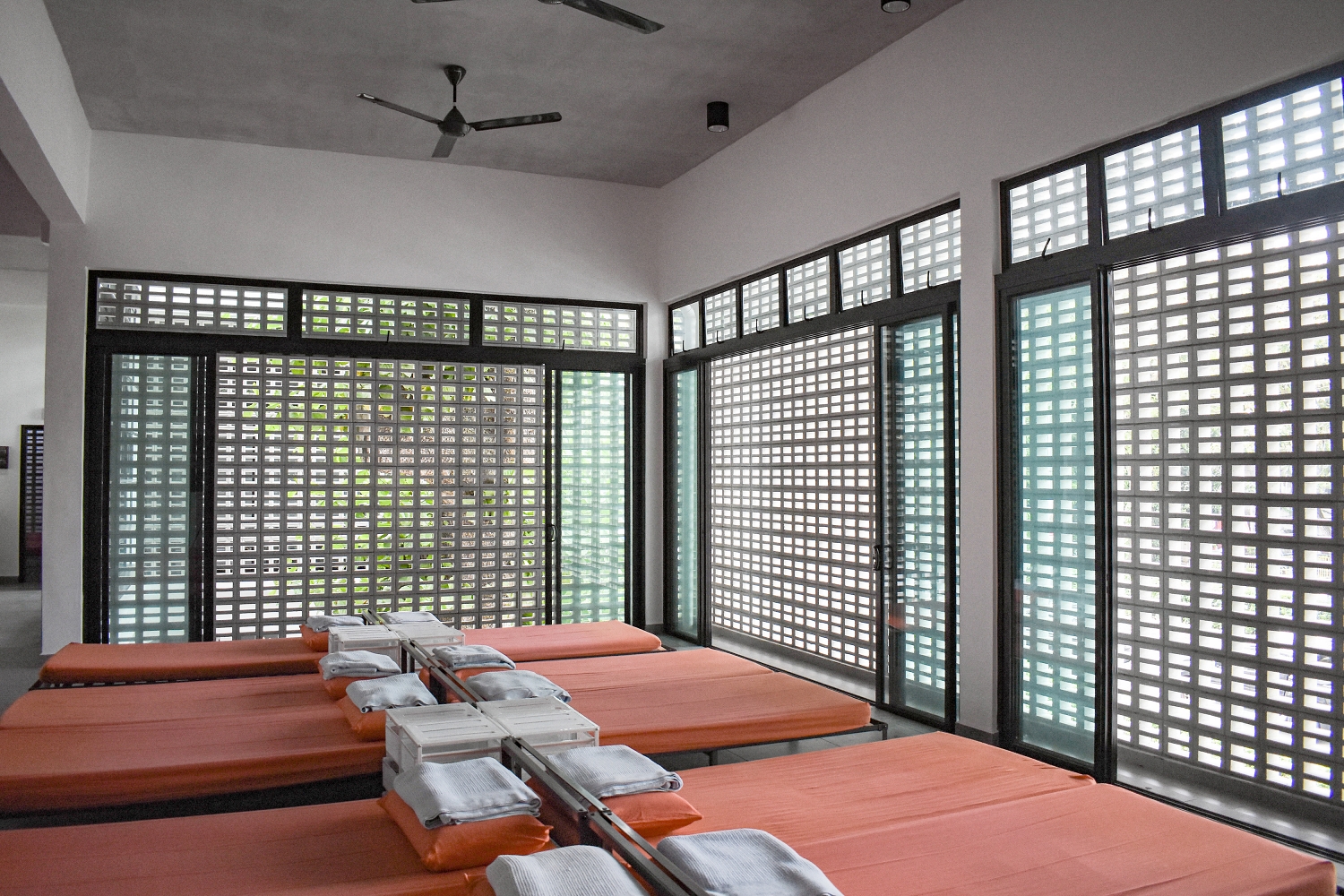 To further fortify the overall spatial experience, the external interfaces of these dormitories with the courtyard are coupled with the introduction of a full-height vent block wall to encourage optimised natural ventilation into the dormitories without compromising the privacy and safety of the street vagrants. Nevertheless, taking into meticulous consideration the building’s overall functionality in all weather conditions, sliding doors have also been introduced to function as an additional shield for the naturally ventilated vent block walls, shading the dormitories and their users from rain and splashes in events of heavy downpours.