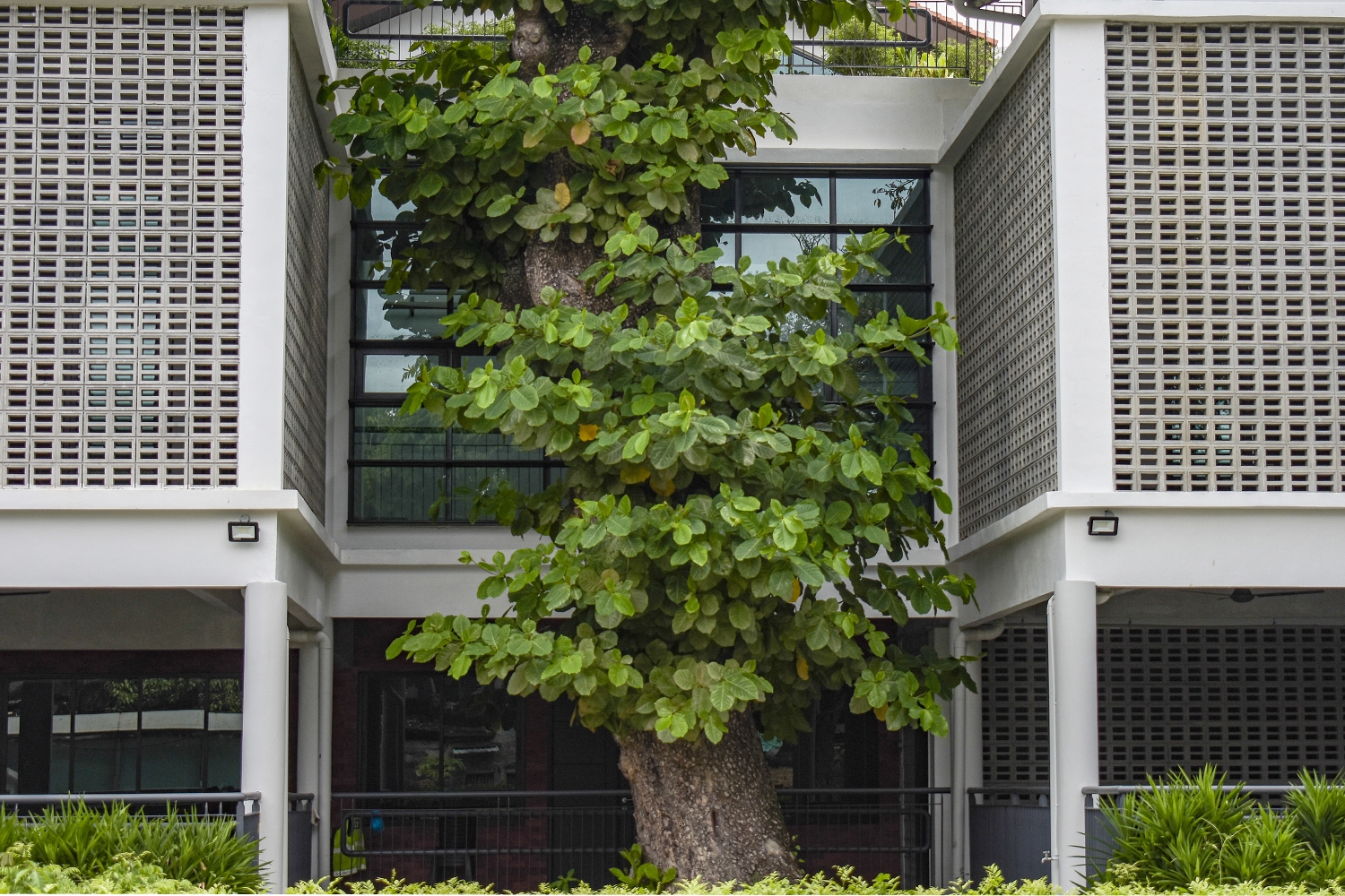 Primarily, the focal point characteristic of the Night Shelter which immediately greets its passers-by approaching the building along the bustling Jalan Magazine is none other than the courtyard starring a heritage ‘Terminalia Catappa’ tree. Internally on the first floor, the main dormitory components for the homeless are planned and curated around this tree to yield the various benefits of the courtyard design. While the courtyard serves the role of bringing the outside in and vice versa, its most crucial role is to create a well-shaded dormitory space with thermally comfortable indoor environments.