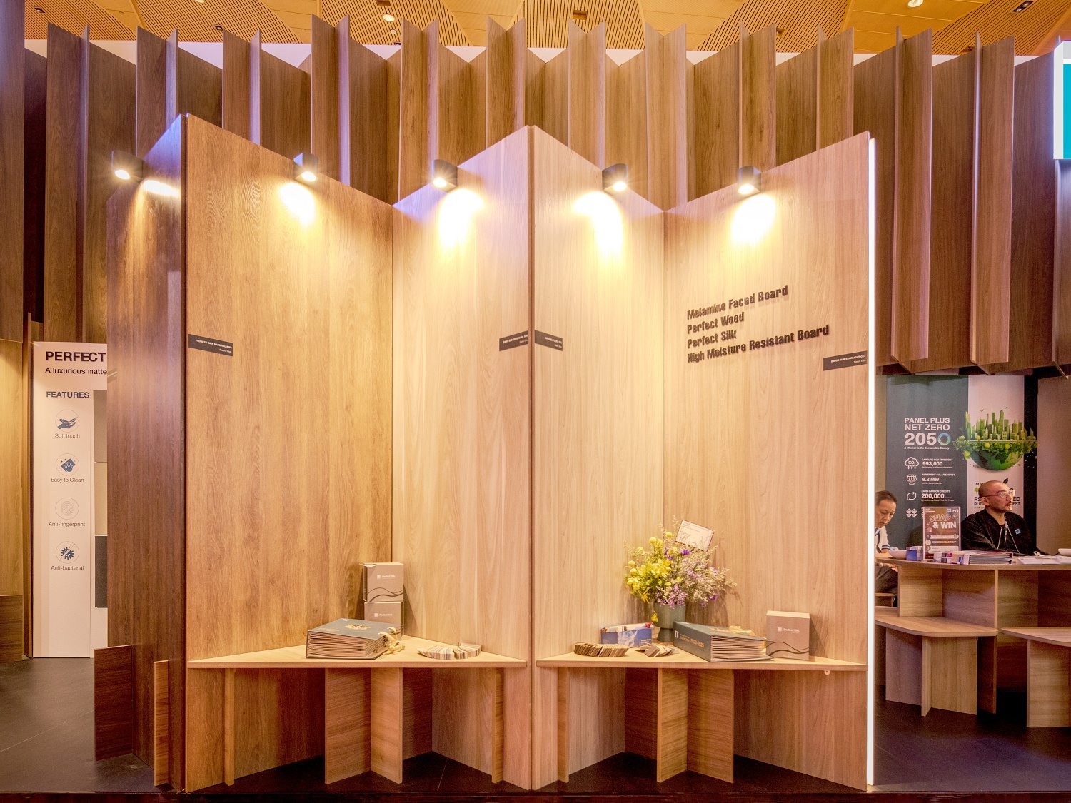 This design not only showcases the versatility and durability of MFC but also emphasises sustainable design practices by minimising and potentially reusing the materials in the future. Ar. Firadaus’s simple and innovative approach highlights the potential of MFC in interior design, setting a precedent for future projects. By using MFC to its full potential, the design underscores the importance of sustainable practices in the industry, promoting the use of durable and versatile materials in place of traditional structural support. This achievement at ARCHIDEX 2024 not only reflects the capabilities of Panel Plus materials but also marks a significant step forward in pushing the boundaries of materials in architectural design, through close collaboration with architects.