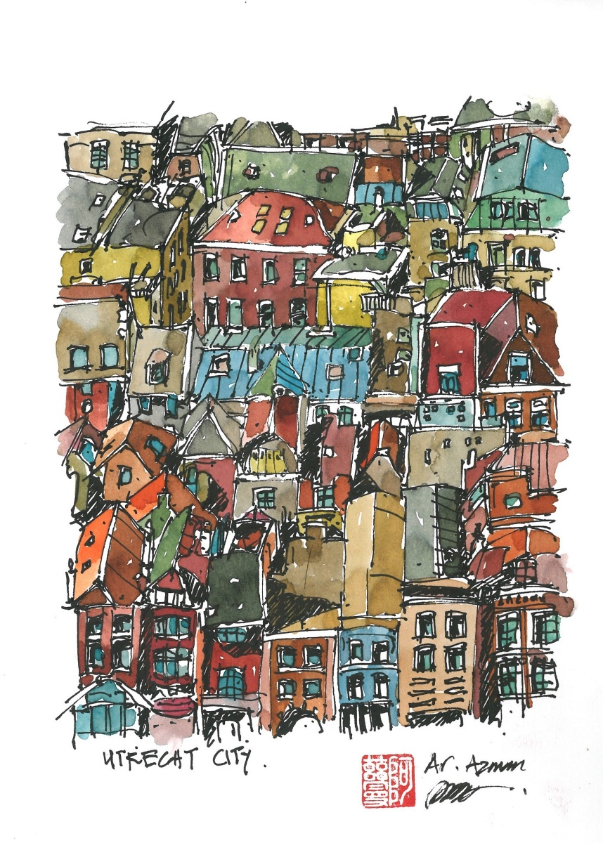 One of the useful tips that I have been teaching to architecture students is knowing when to stop. One needs to identify the level of satisfaction as to the level of completeness in sketching. Once the artwork or sketch has reached the final level, that would be the right moment to stop. For me, the moment each sketch is considered complete, that would be the time to call it a final. Immediately after signing the sketch as well as putting our trademark (in my case, I have my name stamp in red colour), that would not be any further alteration required.