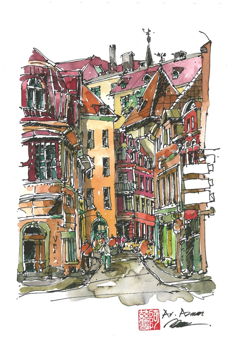 My inspiration towards appreciating buildings all around the world would likely be my philosophical approach. Every subject has a character and story to tell. It is indeed impossible to depict the whole story on paper but I always have my approach of not translating every single detail in the sketch. There are times when the strength of building relies on the substantial segments and it is where I would capture on paper.