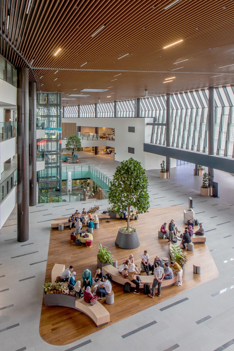 The street atrium is at the heart of the building; and acts as a social corridor allowing people to mingle and have informal interactions to casually share knowledge and build trust