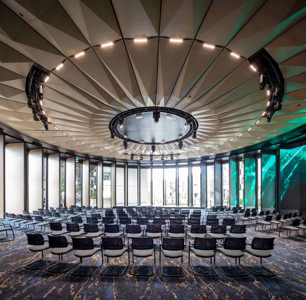 The “360“ is a circular flat-boflomed multi-purpose hall and considered to be the first of its kind in the world. With its state-of-the-art technology, the 360 creates a fully integrated environment providing users