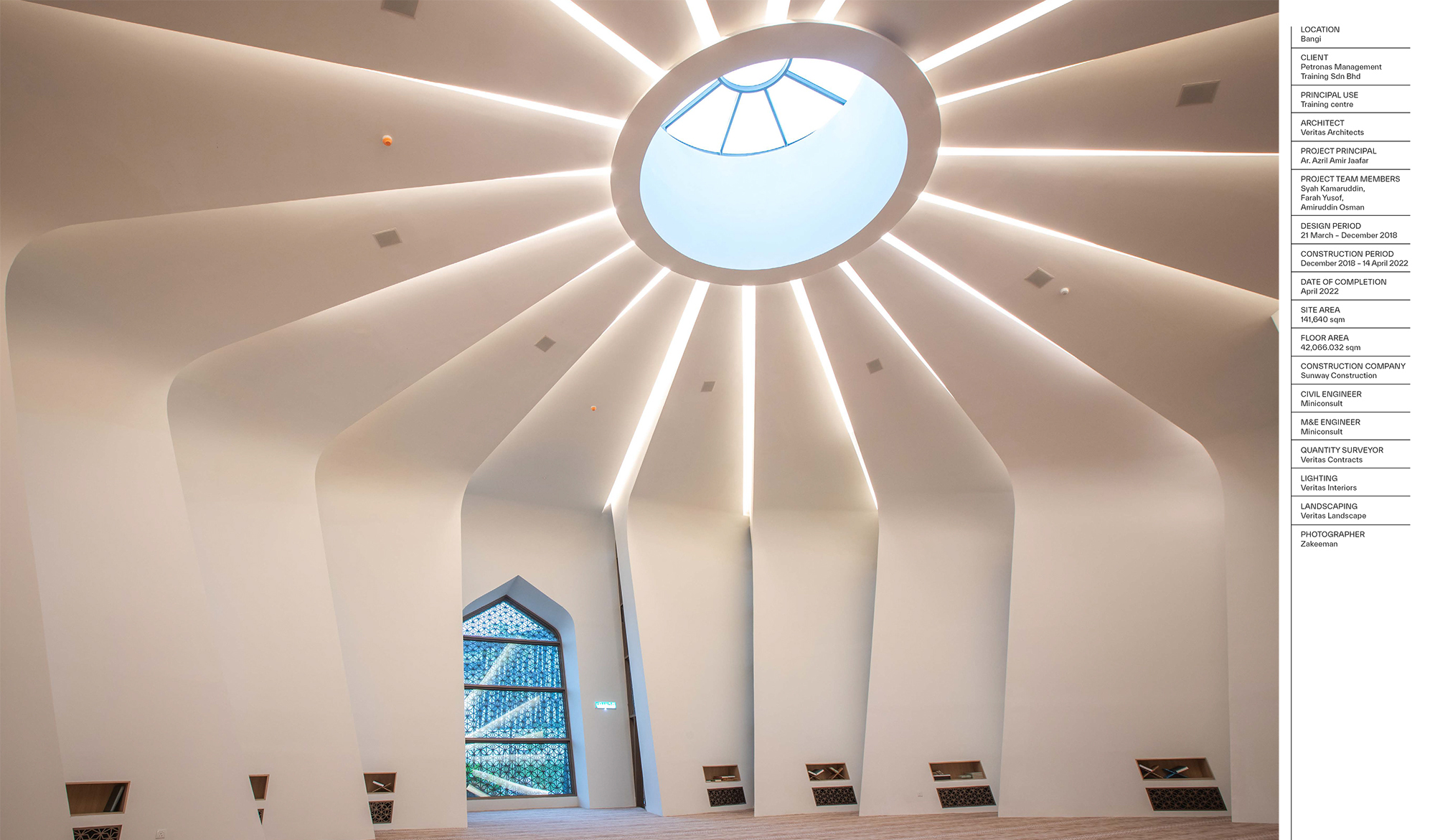 The Surau Ar-Rahman is designed to provide a protective cocoon that offers serenity and shelter. The diffused lighting creates a soft and soothing environment that is perfect for quiet contemplation and reflection