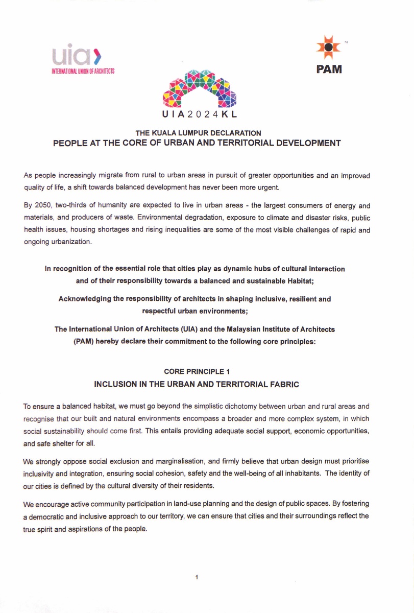 In contemplation of cultural identity, urban diversity discussions at UIA2024KL also touched upon how architecture reflects and influences the diversity of a city. The discourse aimed to explore new definitions of cultural identity, especially in times when environmental, social, and economic challenges, as well as technological disruptions, threaten to undermine social cohesion.