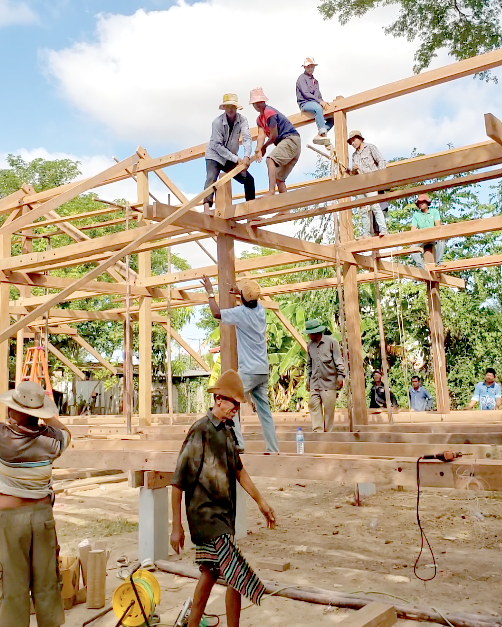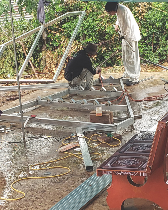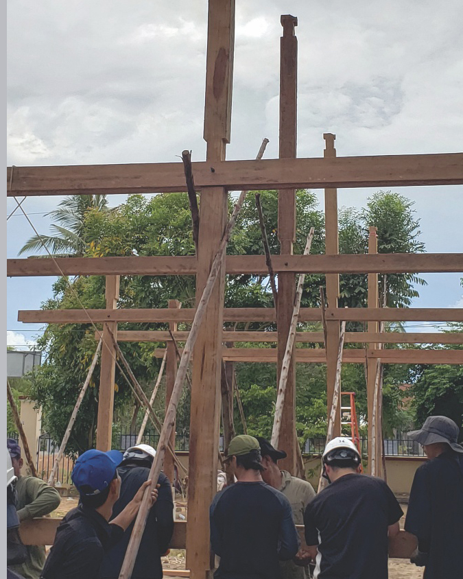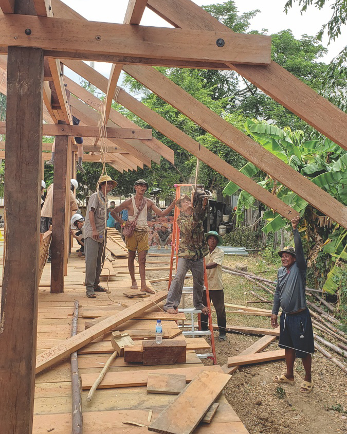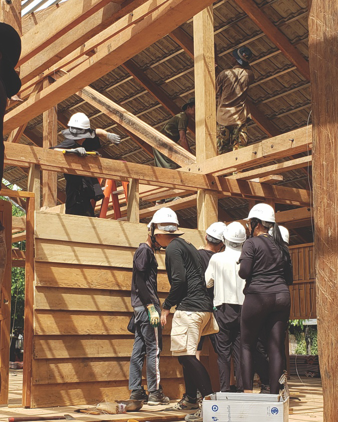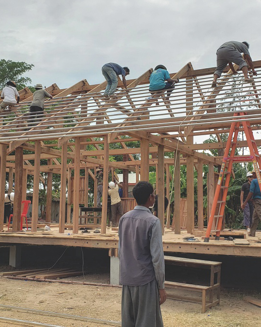 On the final construction day, we visited last year’s school build, noting differences in scale and methods. We also explored a local wet market, gaining insights into the region’s culture. The rest of the day was dedicated to completing the project, focusing on the metal gable-end frame to encourage air circulation.