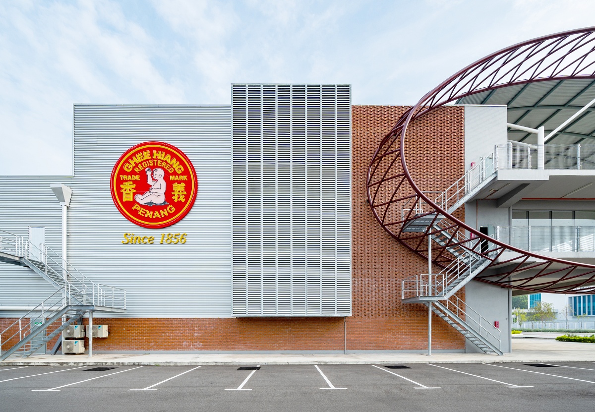 Nestled at the cornerstone of a traffic circus within Penang Science Park North in Simpang Ampat, is Ghee Hiang Manufacturing Company Sdn Bhd’s newest industrial facility. Ghee Hiang, a heritage brand and cultural icon spanning almost 170 years, started off producing traditional pastries before becoming synonymous with teel seed oil; a gift normally bestowed on mothers who are in confinement. Its logo, a waving infant inside a red circle, is instantly identifiable. Ghee Hiang gained its success through many years of careful expansion and growth and as such, the theme for this facility was to reflect the ideology of natural growth.