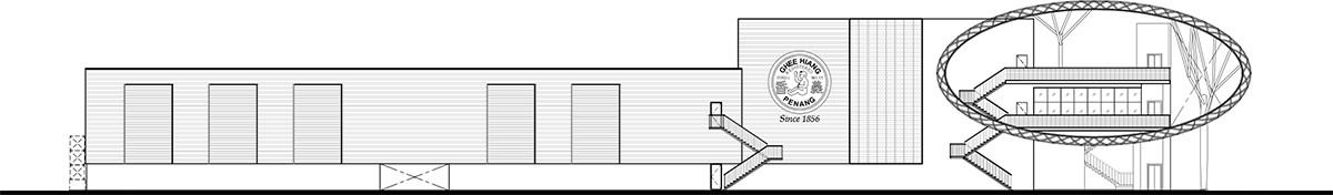 The construction of this 4-acre facility was fuelled by the increasing global demand for Ghee Hiang’s teel seed oil. The facility is separated into two parts; the first is a 3-storey building, enclosed by a roof curvature made of Zincalume® steel, that is open to the elements yet shielded by functional customised louvres, mirroring the canopy layer of the forests. A production area and office space occupy the first two levels, with a recreation and event space on the top floor.