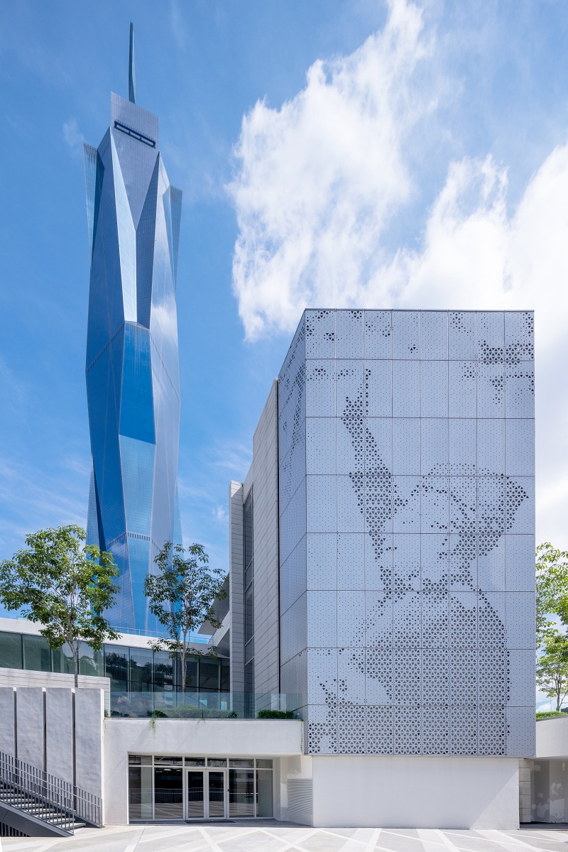 By articulating the tower’s structural pathways with a tline form reveals itself, day and night, as a unified composition of disparate facets and patterns. The sculptural arrangement of triangular faceted glass planes is inspired by traditional patterns inherent in Malaysian art and craft, whilst also serving as a metaphor for the rich ethnic and cultural mix that defines the Malaysian nation.