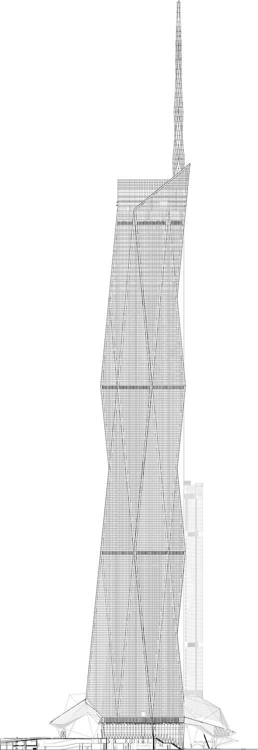 Diamond in plan, Merdeka 118 is sited on axis with neighbouring Stadium Negara to the east, and a new four-acre linear water park, designed by Boston’s Sasaki Associates. This car-free recreational area is designed to promote vibrant community interaction within the city for people of all ages and backgrounds. It will also create an important visual alliance with the revered Petronas Towers and the Kuala Lumpur Tower.