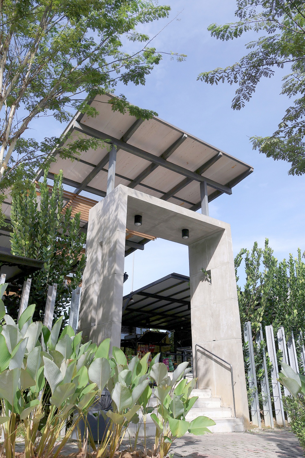 2. A massive concrete gateway serves as the entrance, as a welcoming gesture and sense of direction to the public.
