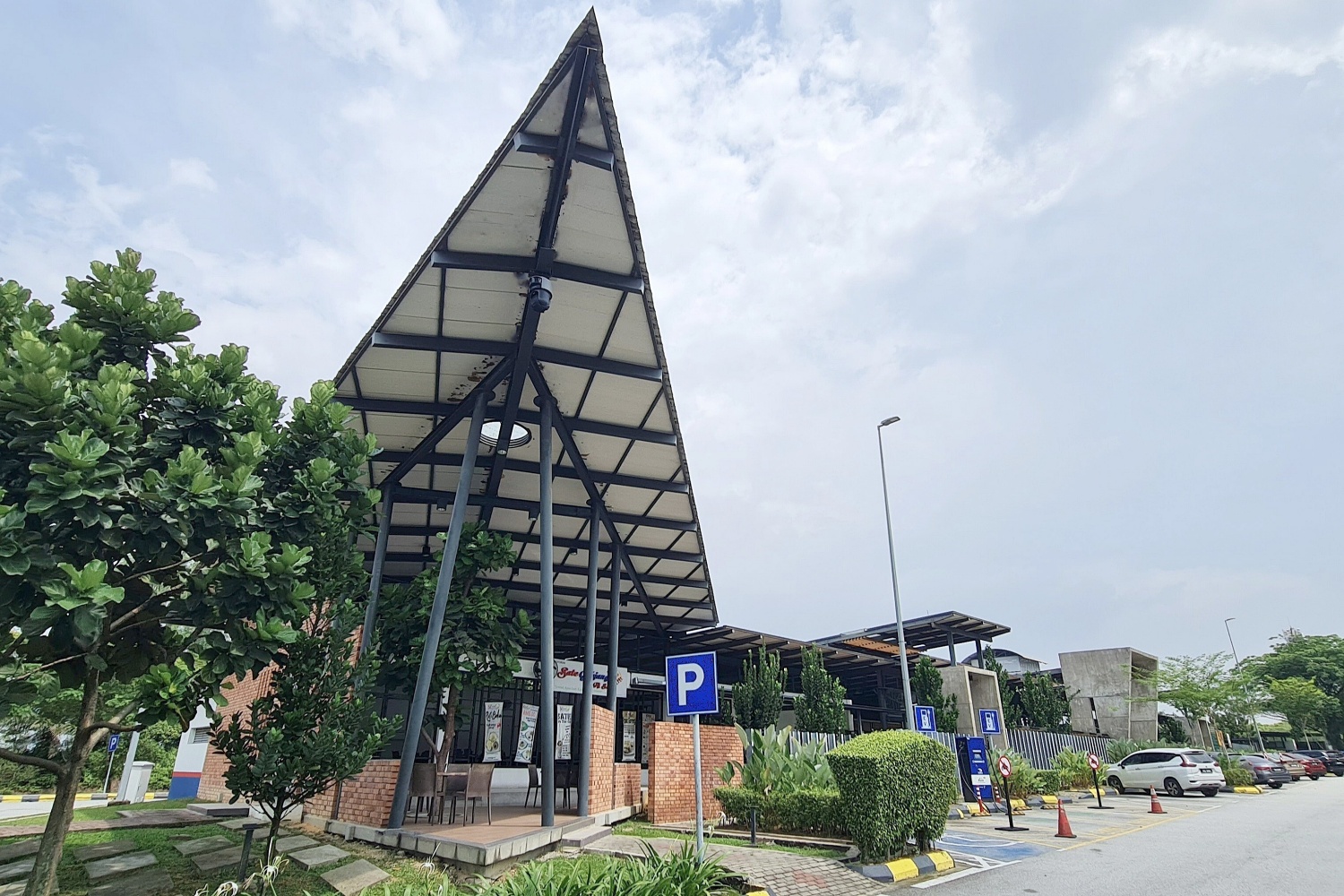 1. 1. A triangular roof at the extended dining area serves as a main focal point that can be seen from afar.