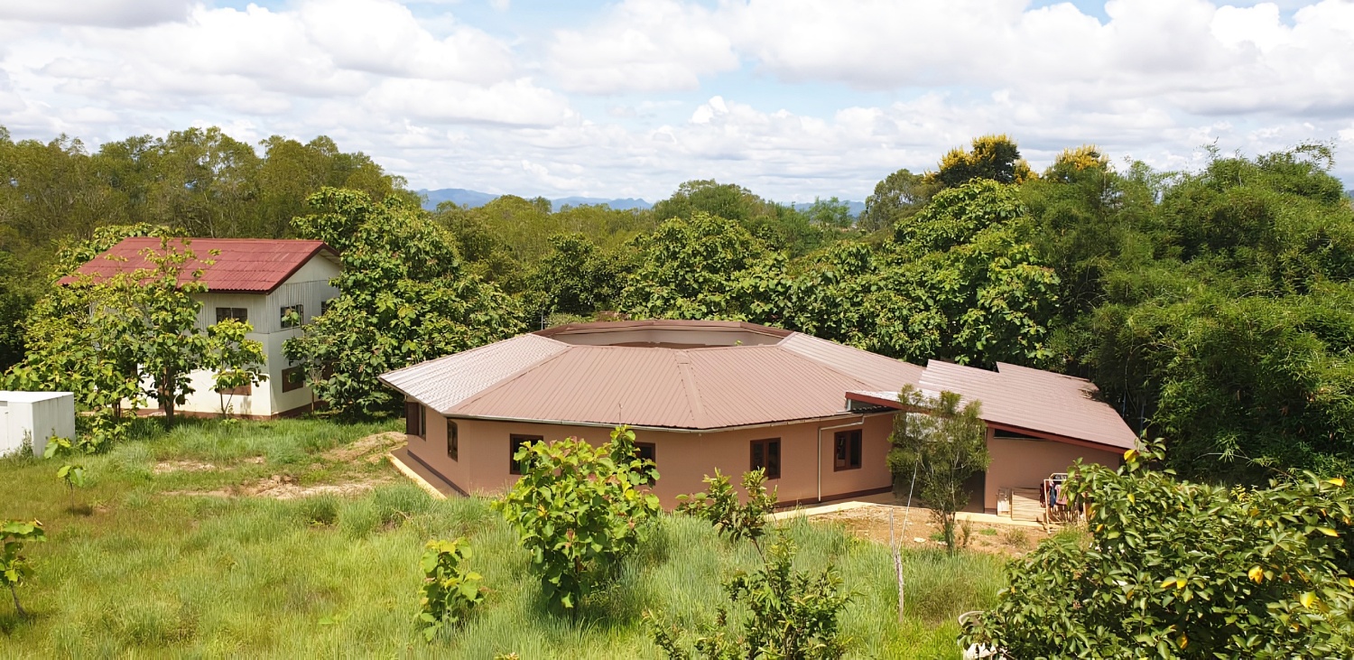 Inspired by the ancient stone jars of the UNESCO-listed Plain of Jars nearby, the Maybank Women Eco-Weavers Hostel serves as a symbol of unity, resilience, and cultural identity. Its hexagonal form was chosen to foster a sense of connection among women from different ethnic and geographic backgrounds. The structure embraces the surrounding landscape, while a central courtyard acts as the heart of the hostel, both literally and symbolically. During the opening ceremony, three mulberry trees were planted here, standing as living representations of growth, tradition, and continuity.
