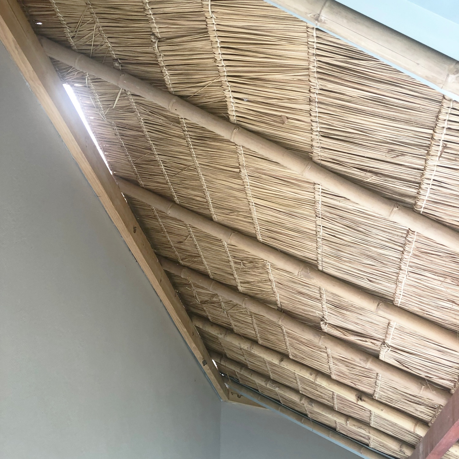 Balancing sustainability with strict budget constraints, the design combines durable and cost-effective materials with elements of local craftsmanship. Concrete columns and brick walls provide structural stability, while walkways covered in bamboo and palm leaf create a softer, more welcoming experience. Carefully positioned mosquito-netted windows allow natural ventilation and bring in panoramic views of the rural scenery, while minimising the need for mechanical cooling. Intimate sleeping areas are defined by partitions made from bamboo and handwoven textiles, adding warmth and cultural context to the interior.