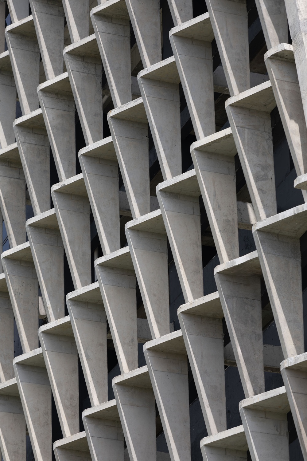 Adding a layer of raw authenticity, the building’s design incorporates a brutalist architectural approach, most notably through the expressive use of bare concrete. This choice reinforces the tower’s monumental presence, conveying both durability and timelessness. To preserve the integrity of the exposed concrete, a clear, water-repellent coating by SKK has been applied, protecting against moisture and fungal growth while retaining its bold aesthetic.