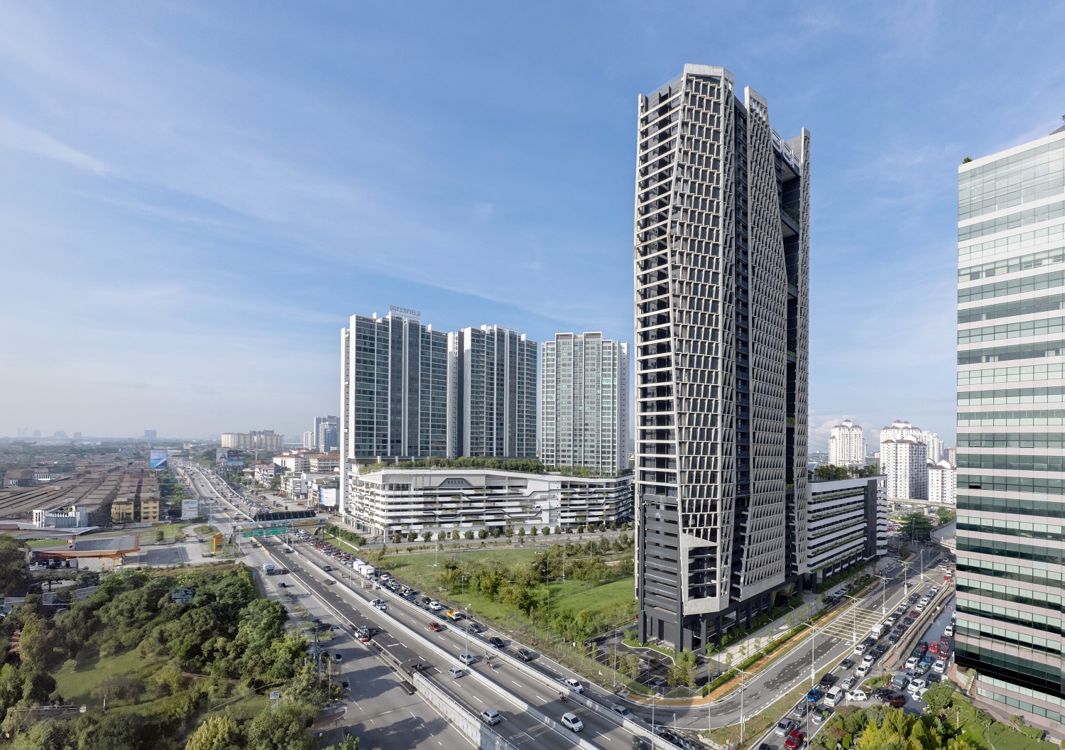 Rising 140 meters into the sky with 40 floors of sleek architectural ingenuity, YOLO Signature Suites makes a dramatic and artful impression on the Bandar Sunway skyline. Far more than just an office commercial building, this striking new landmark is a thoughtfully designed building intended not only to stand out but also to rejuvenate and enhance the convergence of retail malls, restaurants, offices, and universities in the area. The building’s design incorporates organic forms inspired by the rugged and sculptural characteristics of mountains, creating a distinctive and captivating structure that complements its urban surroundings.