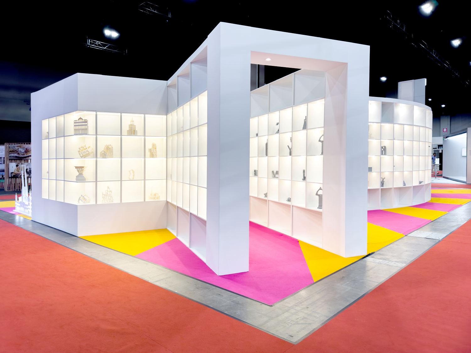 Inspired by the theme, “Build Your Imagination, One Brick At A Time,”invites participants of all ages to construct miniature architectural forms using play-bricks.Each creation, whether playful or precise, is then displayed on the pavilion’s striking curved white façade: a lattice of square racks stacked one over another.The facade evolves daily, transforming into a living archive of imagination, authored collectively by its visitors.