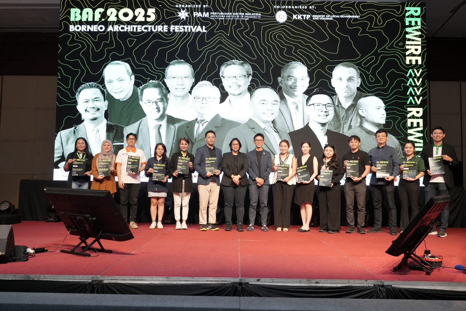 The Borneo Architecture Festival (BAF) 2025 was held to coincide with World Architecture Day, bringing together professionals and enthusiasts to explore the dynamic intersection of modernisation and ecological preservation in architecture. The organising chairperson for BAF 2025 – Ar. Sharon M Amin envisioned the festival to be guided by the theme “Rewire // Rewild,” which provided a vital platform for inspiring talks, discussions, and networking, aiming to foster sustainable design practices and celebrate local cultural identity amidst rapid urban development. The primary objectives of BAF 2025 were to: