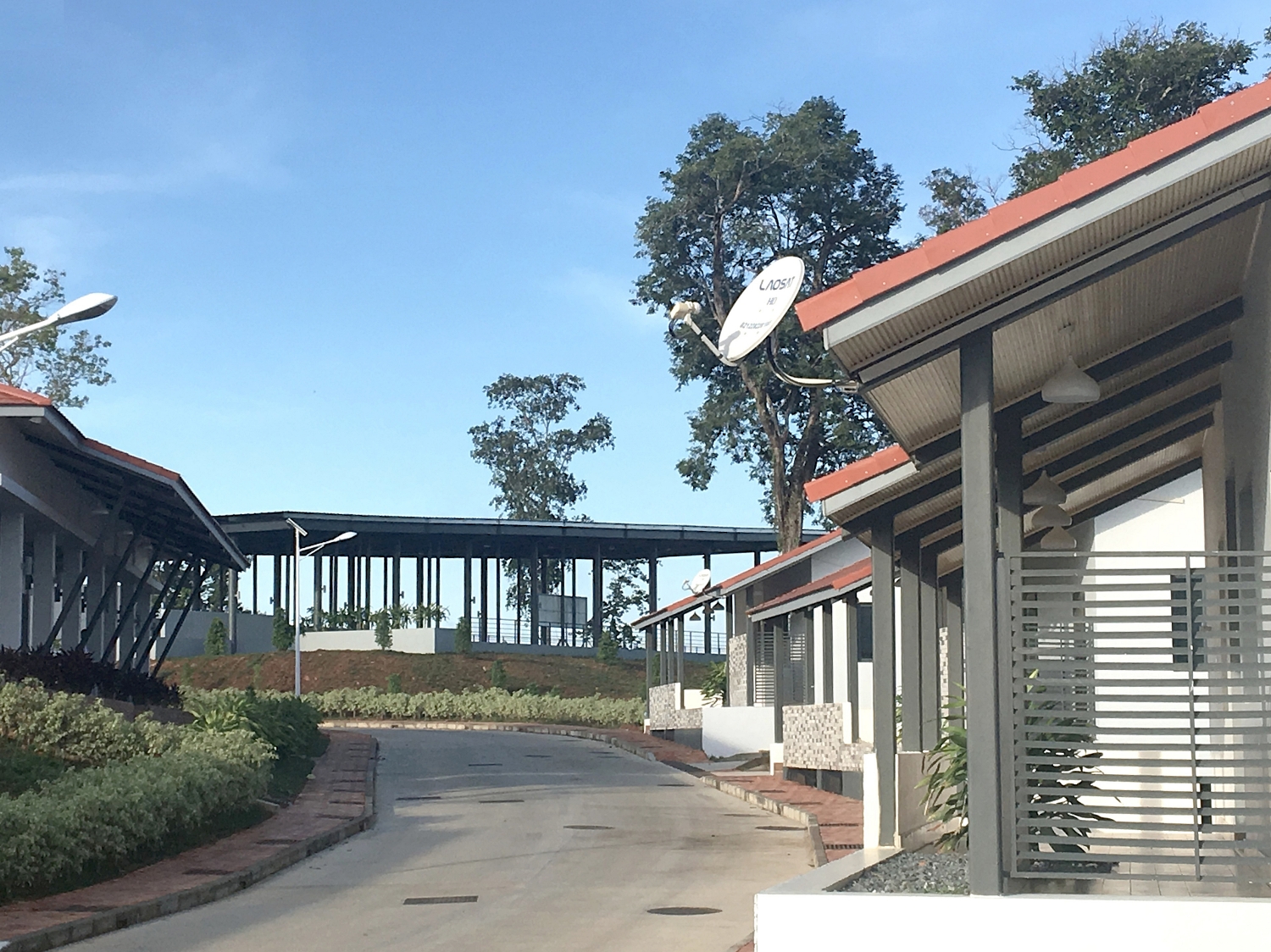 This estate resembles a typical Laotian village, which overlooks the panoramic thousand islands of the Mekong formed by tributaries and the waterways. Consists of a variety of Villas and Standard Room Hostels, which are placed along the peripheral crown of the hill to maximise view and privacy. Whereas the Restaurant, Guesthouse, Gym, and a Multipurpose Indoor court are located in the centre as a Facilities Hub near the Viewing Deck. The Workshop, a Fire-Engine Depot and Sewerage Plant, is tucked away towards one end.