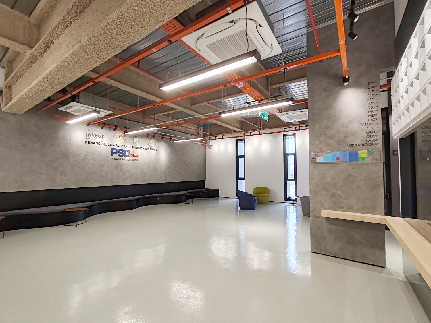 GBS facilities are designed to cater to a transient community; their short-term rentable spaces are meant to be initial offices in a prime industrial location for new and foreign start-ups, who are expected to expand into their own offices in due time. As such, GBS TechSpace contains generous open-plan spaces of various sizes to cater to different scales of innovator and start-up companies. The spaces were provided with bare finishes and loose wiring points only to reduce demolition waste from tenant fit-outs.